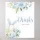 Blue Floral Bunny Rabbit Baby Shower Drinks Poster