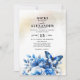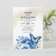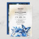 Elegant blue and white watercolor floral and butterfly wedding invitation personalised with a photo on the back. All wording can be customised for your personal needs. Contact me for assistance with your customisations or to request additional matching or coordinating Zazzle products for your event(s)