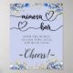 Blue Floral Calligraphy Mimosa Bar Sign
