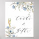 Blue floral themed bridal shower cards and gifts sign features two floral watercolor arrangements in shades of blue and white and a tall champagne glass. The text is non-editable.