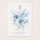Featuring a beautiful traditional Catholic Blue Floral remembrance prayer card with an image of a gold crucifix entwined with two gold wedding rings. A prayer is on the back for the bride and groom. All text and fonts can be modified.