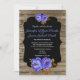 Blue floral, chalkboard rustic brown wood wedding invitation