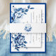 Blue floral Chinoiserie peony flower crest wedding Invitation Belly Band