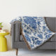 Blue Floral Chinoiserie White Watercolor Throw Blanket