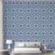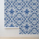 Blue Floral Chinoiserie White Watercolor Wallpaper