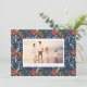 Blue Floral Christmas Pretty Holiday Photo Card. Red, white, Mint pink and pastel colours, bright and happy. christmas trees birds, hearts, berries, stars. a happy, flower design!