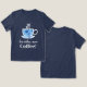 Tee in a stylised coffee cup is filled with a blue floral pattern and topped with rising steam. Below, the phrase “less talkee, more Coffee!” adds a humourous, relatable touch perfect for coffee lovers.