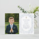 Celebrate your child's special day with this blue Communion thank you card, featuring a gold cross, delicate floral border, and a space for your favorite photo. This elegant and faith-filled design is perfect for expressing gratitude after your child's communion.
