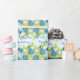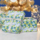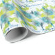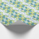 Wrapping paper shown with a Blue & Spring Green multicolor print over White background. Text in coordinating colour reads "congratulations on your wedding day". Created on glossy paper, but you can select paper choice. Customise this item or buy as is. See coordinating paper plates & napkins, and invitation too.