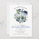 Stunning baptism invitation featuring a watercolor of lush blooms in blue and green. Easy to personalise with your own details. Several sizes, shapes and paper types to choose from.