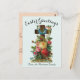 A pretty reproduction of a floral cross vintage Easter card, it has been edited to clean the image up, and it has a reproduction of a vintage postcard on the back so that you can write a message. Send it in the mail or give it with an Easter gift. This is a pretty choice for a religious greeting. Customise the message on the front of the card using the editing tool in the listing to personalise the family name.