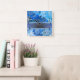 Blue Floral Daisy Pattern Square Wall Clock