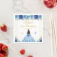 This elegant and glamourous birthday party napkin features a beautiful princess with dark hair and dark skin in a blue ball gown. The text combines handwritten script and modern sans serif fonts for a classy and sophisticated look. The floral arrangements, butterflies and gold confetti create the perfect blend of rustic and chic.