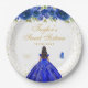 Blue Floral Dark Skin Princess Sweet Sixteen Paper Plate