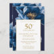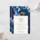 Blue Floral Elegant Modern 50th Anniversary Invitation
