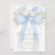 Blue Floral Eucalyptus Bow Boy Baptism Invitation