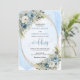 Set the tone for an unforgettable celebration with this elegant watercolor wedding invitation, beautifully designed with dusty blue florals, soft white peonies, and delicate eucalyptus