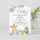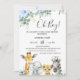 Blue Floral Eucalyptus Safari Heads Baby Shower Invitation