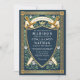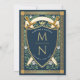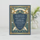 Blue Floral Fantasy Swords Shield Monogram Wedding Invitation