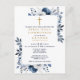 This modern navy blue floral first holy communion save the date can be personalised with your information in elegant typography. Designed by Thisisnotme©