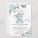 Blue Floral Foliage Elephant Peanut Baby Shower Invitation