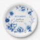 Blue floral frame Chinoiserie flowers boy Baptism Paper Plate