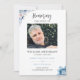 Honour the life and memory of a loved one with this elegant funeral invitation featuring soft blue watercolor florals and a photo. The calm, minimalist design is easy to personalise with the name, dates, ceremony details, and your own message.