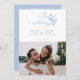 Blue Floral Garland Photo Card Couple Wedding Invitation.