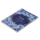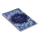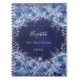 A midnight blue background with faux glitter dust and blue florals. The blue colour is uneven. The name is written with a modern hand lettered style script. Personalise and add your name, title and year.