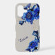 This pretty phone case for her has a subtle gold confetti overlay with a background of vivid blue flower bouquets. Her name is written in matching blue script, and everything is placed on a pale silver grey background. Just enough sparkle, without being glitzy!