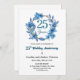Blue Floral Gold Frame 25th Wedding Anniversary Invitation