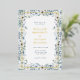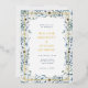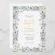 Blue Floral Gold Wedding Foil Invitation. Step into a garden of botanical beauty and discover a stunning invitation design featuring beautiful hand-painted watercolor florals. The delicate dusty blue, cream, and white roses and sage green eucalyptus greenery create a rustic elegance, perfect for your special event! The blue-grey font and subtle touches of blue perfectly complement the timeless design. Let this exquisite invitation express your rustic romantic elegance and timeless style.