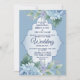 Blue Floral Green Leaves Frame Elegant Wedding Invitation