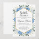 Blue Floral Greenery Sweet Sixteen 16 Birthday Invitation