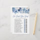 Blue Floral He Said She Said Bridal Shower Game Stationery
