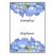Pretty tented, blue hydrangea place cards with names on both sides. Dark grey, calligraphy name template. Cards will be folded by the customer.