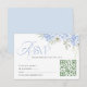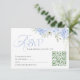 Elegant floral Wedding RSVP Card, featuring a pastel blue delicate hydrangea floral arrangement and elegant typography.