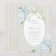 Blue Floral Hydrangeas Sage Green Whimsical Bridal Invitation