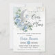 Blue Floral Koala We're Over the Moon Baby Shower Invitation