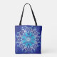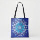 Blue floral mandala on grunge background. tote bag