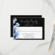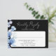 Blue Floral Monogram Black And White Wedding RSVP Card