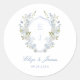 Elegant wedding envelope seal, embellished with a stunning soft blue floral wedding monogram crest and classic calligraphy.