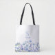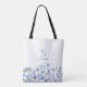 Elegant blue floral tote bag with monogram and name. Easy to change the text. Delicate, pretty watercolor wildflower design.