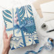 This elegant intricate floral design shows blue floral patterns on a white background. Inspired by old Chinese floral art.