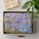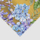 A charming, very pretty floral pattern with blue flowers mixed with purple floral arrangements, with a hint of greenery for contrast. In the background behind them all is a striking gold background.