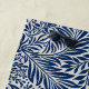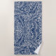 Intricate blue floral pattern with diverse leaves and blossoms on a beige background, conveying an elegant and natural aesthetic.