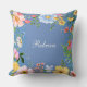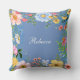 Pretty blue throw pillow - available in different sizes and fabrics, that you can personalise with your name, features a lovely, colourful floral border all around the edges.