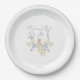 Blue Floral Peter the Rabbit Monogram Baby Shower Paper Plate
