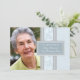 Custom photo 80th Birthday party invitations in elegant blue and grey floral pattern. Add your name, photo, and party details for a unique and stylish birthday party invitation.
