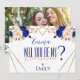 Blue Floral Photo I can't Tie The Knot Without You, Will you be my bridesmaid? card. Pop the question With this Custom simple cute and elegant card. The design has Blue floral and geometric frame background with will you be my bridesmaid written in pretty font. On the back side of the card , there is space for 1 photo and "i can't tie the knot without you " written in pretty font. Customise the card by changing the Bridesmaid's name and other details . . For any further customisation , feel free to contact me at mypaperlove2021@gmail.com